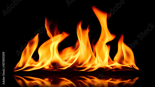 Flames Dancing with a Reflective Surface in a Black Background Abstract Image