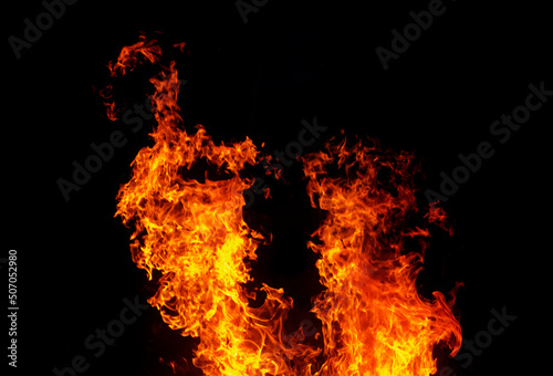 Flames isolated on black background for graphic design or wallpaper.