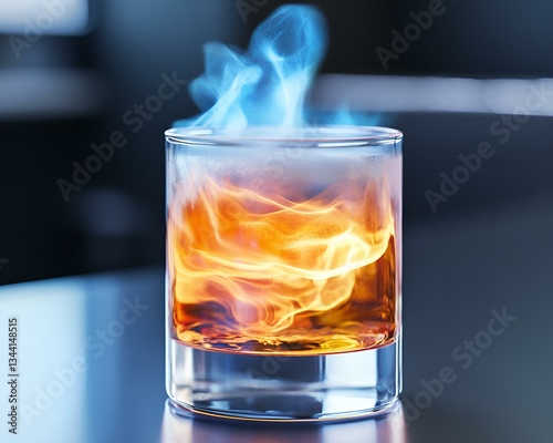 Flaming Cocktail in Glass, Temperature Change, Abstract Fire