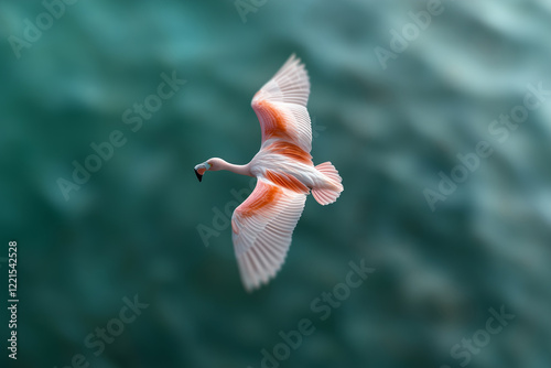 Flamingo gracefully glides over shimmering waters captured in a stunning aerial view at sunset