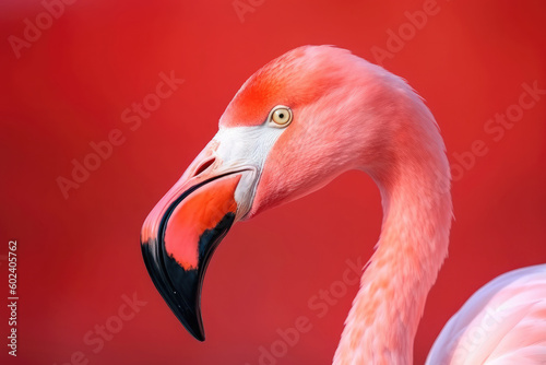 Flamingo portrait on pastel colored background. Exotic bird. Creativity banner. Created with Generative AI