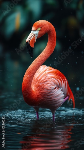 Flamingo Serenity, a charming depiction of a flamingo gracefully wading in tranquil water, vibrant colors and gentle ripples enhance the scene.