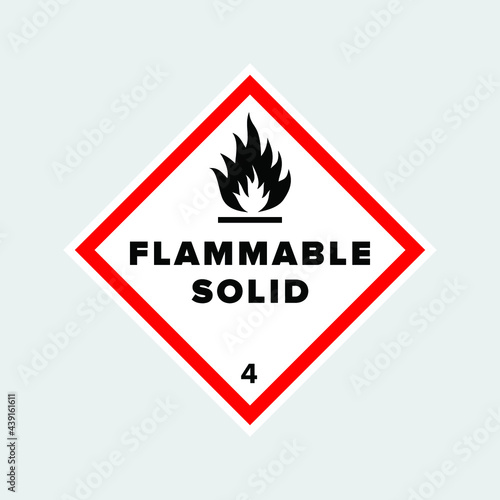 Flammable sign. Flame image. Hazard class 4 (solid materials). White vector sign. The danger.