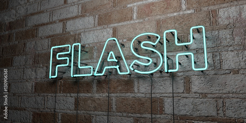 FLASH - Glowing Neon Sign on stonework wall - 3D rendered royalty free stock illustration. Can be used for online banner ads and direct mailers..