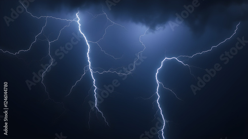 Flash of lightning on dark background, banner design. Thunderstorm. Generative AI