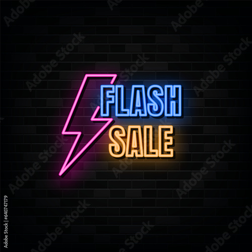 Flash Sale Neon Signs Vector. Design Template Neon Style