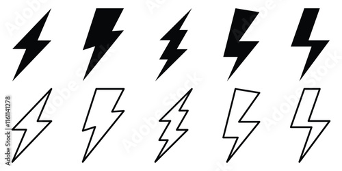 Flash thunder power icon. Black flash lightning icon. Electric symbols. Bolt lightning flash icons. Energy and thunder lightning bolt silhouette on white background.