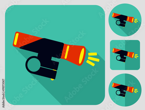 Flashlight icon. Bike accessories. Flat long shadow design. Bicycle icons series.