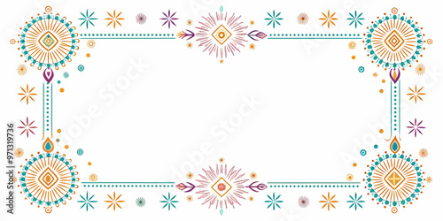 Flat Abstract Rangoli and Sparkler Lines Border: Modern Minimalistic Frame with Vibrant Cultural Elements for Festive Promotions