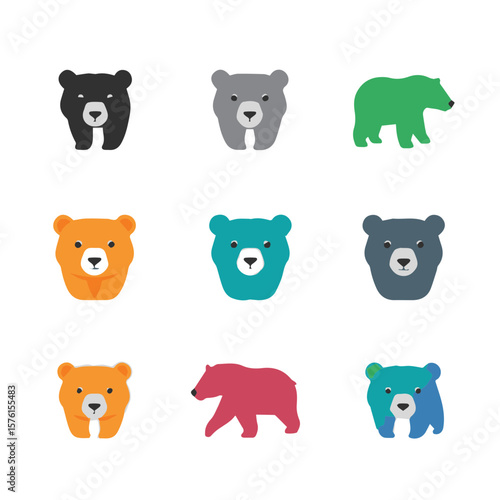 Flat Bear Icons with Geometric Style – Vector Animal Pack