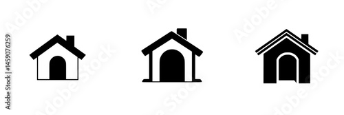 Flat black icons of houses representing home, shelter, and residential designs suitable for various applications