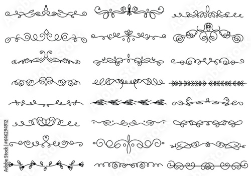 Flat cartoon set of swirly dividers. An illustration set with stylish black twisted dividers designed in a playful cartoon motif that will be a decoration of any design. Vector illustration.