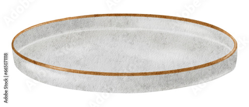 flat ceramic plate. watercolor illustration. isolated. kitchen utensils. tableware for table setting. design element for cookbook, recipe, menu, food label, packaging