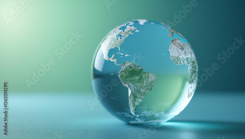 Flat Crystal globe symbolizes clean hydrogen energy H2 sustainability eco friendly industry climate alternative energy for net zero and reducing greenhouse gas emissions concept as Crystal globe repre