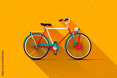 Flat design bicycle emphasizing movement and freedom with bright colors and dynamic angles