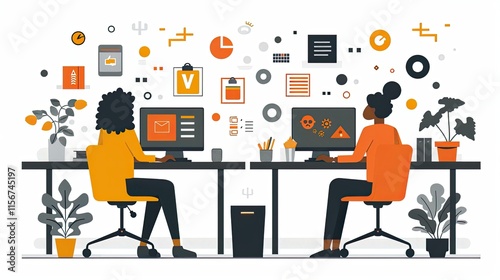 flat design, illustration, Virtual Meetings: Online communication that sparks creativity
