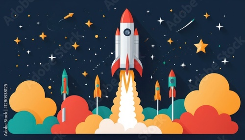 Flat design of a rocket launch representing startup growth