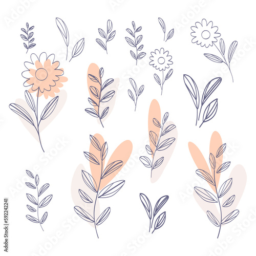 Flat design of linear leaves and flowers