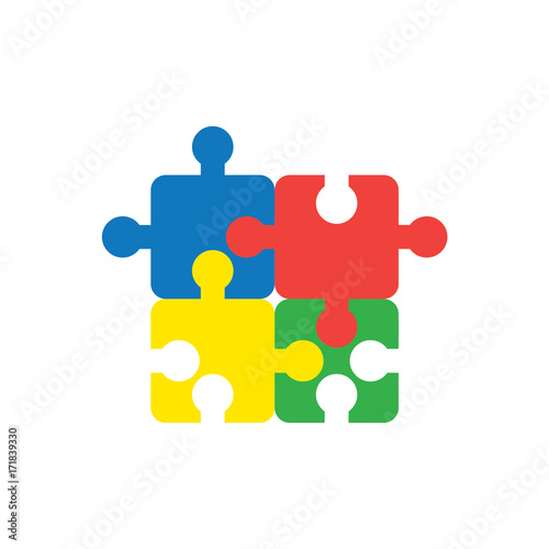 Flat design style vector concept of four jigsaw puzzle pieces icon connected on white
