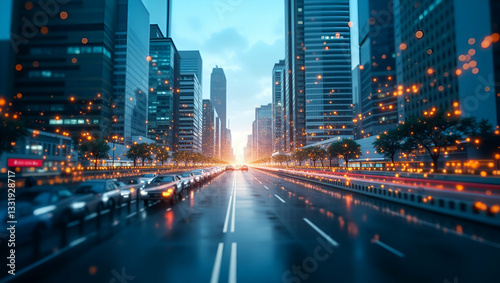 Flat Double Exposure Illustration: Merging Business Charts with Urban Financial Districts for Effective Financial Data Visualization in a Smart Business Tone
