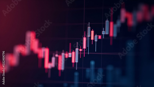 Flat Financial Graph with Uptrend Line: Neon Candlestick Chart Illustrating Positive Stock Market Trends in a Cute Vector Style for Smart Business Insights