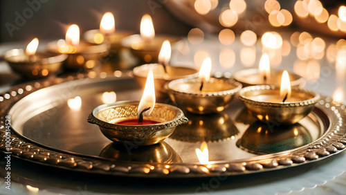 Flat Glossy Bhai Dooj Background with Diya Setup: Traditional Celebration with Warm Lights and Reflections - Simple Vector Illustration