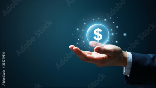 Flat Hand presenting holographic business insight strategy profitability symbol in empty space background concept as A hand showcases holographic business insight strategy profitability symbol illustr