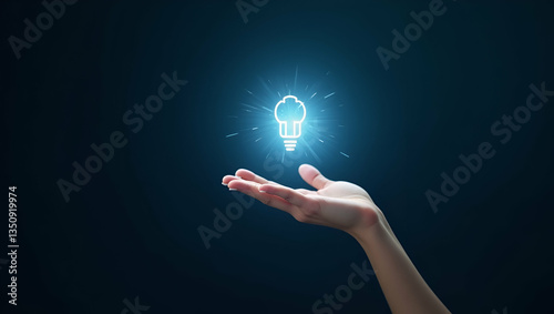 Flat Hand presenting holographic business insight strategy technology symbol in empty space background concept as A hand showcases holographic business insight strategy technology symbol illustrating