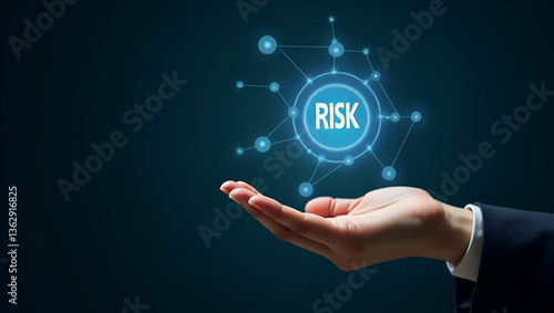 Flat Hand Presenting Holographic Risk Potential Icon: A Cute Vector Illustration of Risk-Reward Dynamics in Financial Management for Smart Business Strategies