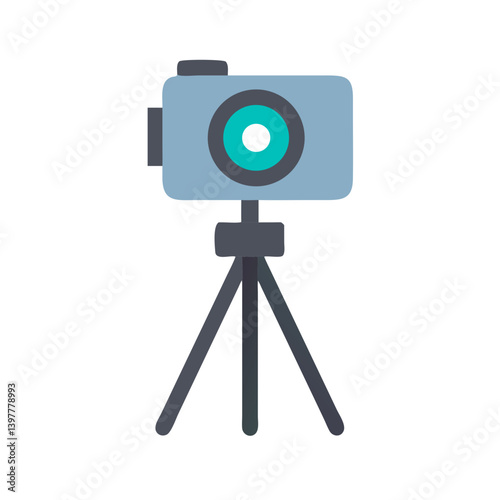 Flat icon of a digital camera mounted on a tripod, symbolizing photography, videography, or content creation.