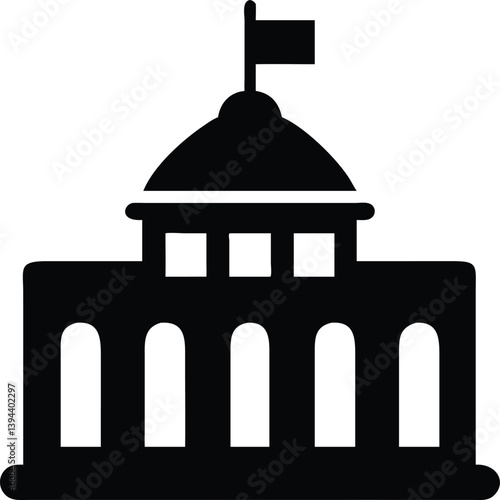 Flat Icon of Government Building Silhouette with Flag on Transparent Background