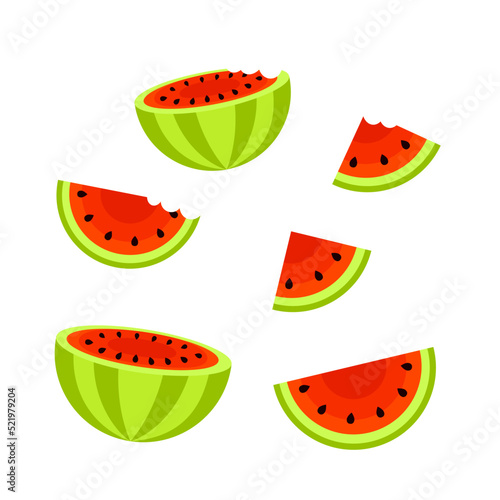 Flat icon watermelon on green background. Vector food element for your design.