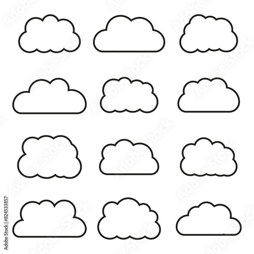 Flat illustration. Clouds in a black outline isolated on a white background. Ideal for textile design, stickers and more...