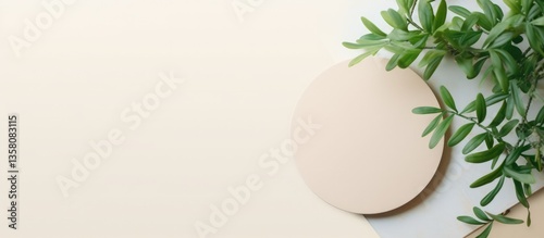 Flat lay design of blank paper for text invitation card template and green plant. Generate AI image
