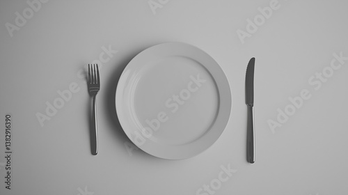 Flat Lay Elegant White Plate with Knife and Fork on a Clean Background