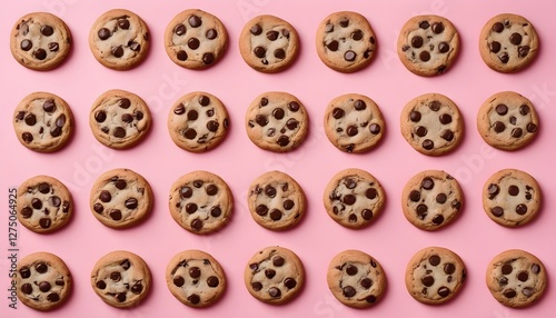 Flat Lay of Chocolate Chip Cookies on Pink Background