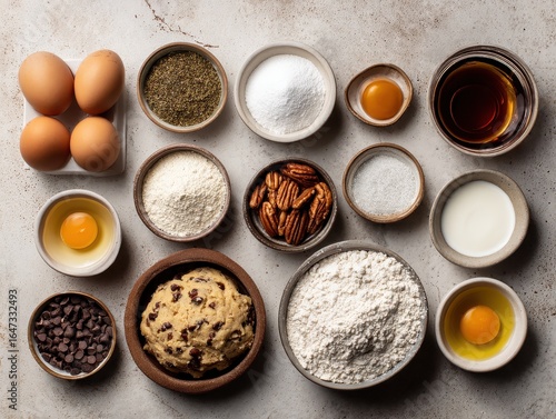 Flat Lay of Cookie Dough Ingredients on Baking Sheet
