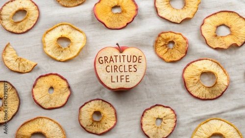 Flat Lay of Dried Apple Slices with Gratitude Message