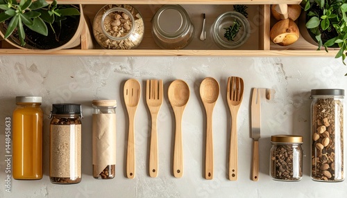 Flat Lay of Sustainable Eco-Friendly Kitchen Tools and Zero-Waste Supplies
