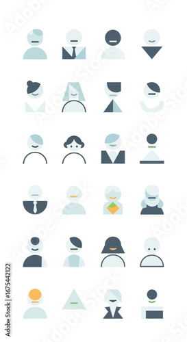 Flat lay of various minimalist human icons in shades of blue and gray on a white background.