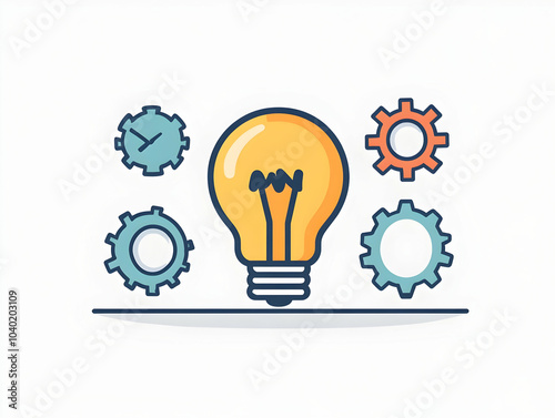 Flat Lightbulb Gear Icon Vector Graphic Innovative Solutions ESG Infographics Front View Simple Flat Illustration Smart Business Tone White Background