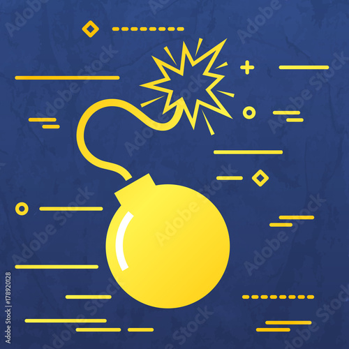 Flat Line design graphic image concept of bomb icon on a blue ve