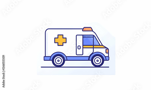 Flat Line Vector Ambulance Icon in Simple Style for Design Projects