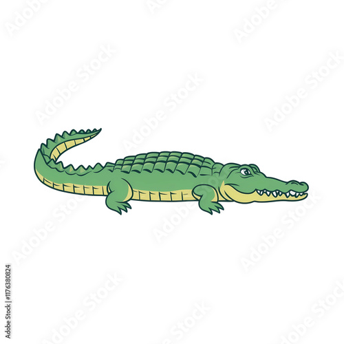 Flat Logo Style Illustration of Crocodile with Colorful and Soft Designs in Transparent PNG Format