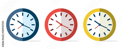 Flat long shadow clock icon isolated on white background . Vector illustration