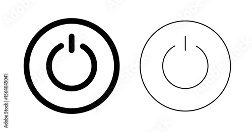 Flat minimalist power button on-off switch icon in outline style, vector EPS 10 format. Depicts a circular power symbol with toggle states, ideal for UI elements, digital dashboards, system controls.