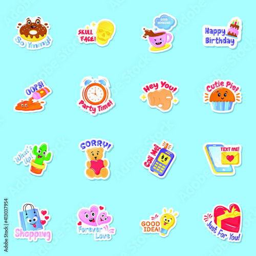 Flat Party and Celebration Sticker Vectors in Editable Style