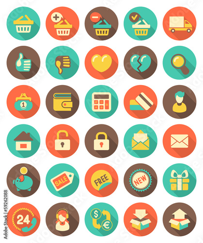 Flat Shopping icons with long shadows
