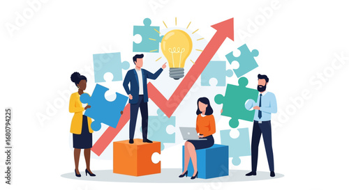 Flat Style Business People Teamwork Idea Collaboration Puzzle Success Illustration