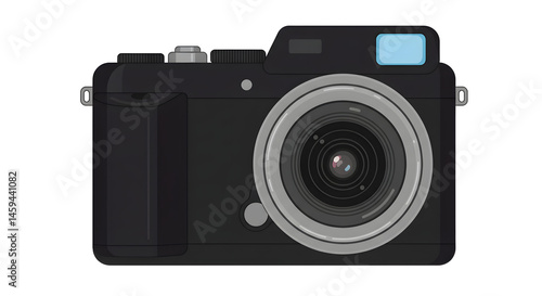 Flat style digital camera illustration with lens detail, suitable for photography, media, travel, and modern technology-themed content and infographics